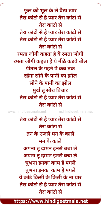 Lyrics of Phool Ko Bhool Ke Le Baitha Khaar - फूल को भूल के ले बैठा खार