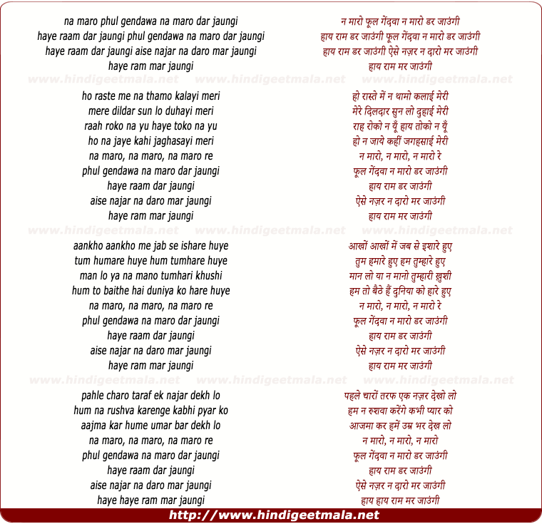 Lyrics of Phul Gendwa Na Maro Dar Jaaungi - न मारो फूल गेंदवा न मारो डर जाउंगी