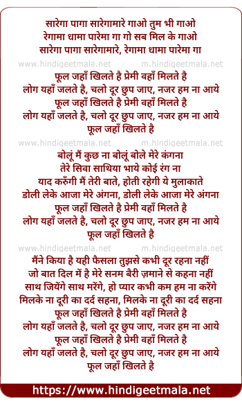 Lyrics of Phul Jaha Khilte Hai Premi Waha Milte Hai - फूल जहाँ खिलते है प्रेमी वहाँ मिलते है