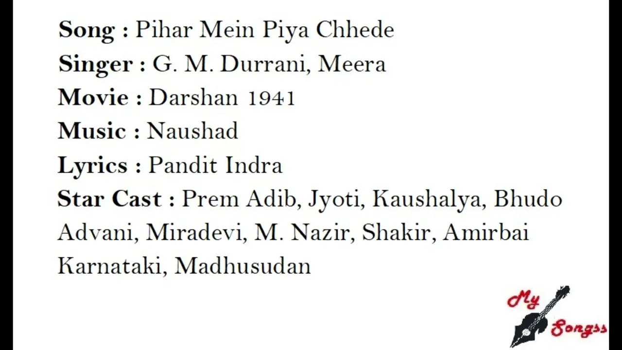 SingerMeera, G.M. Durrani, Amirbai Karnataki, Sheetal Ghosh, Jyoti, Prem Adeeb, Bhudo Advani