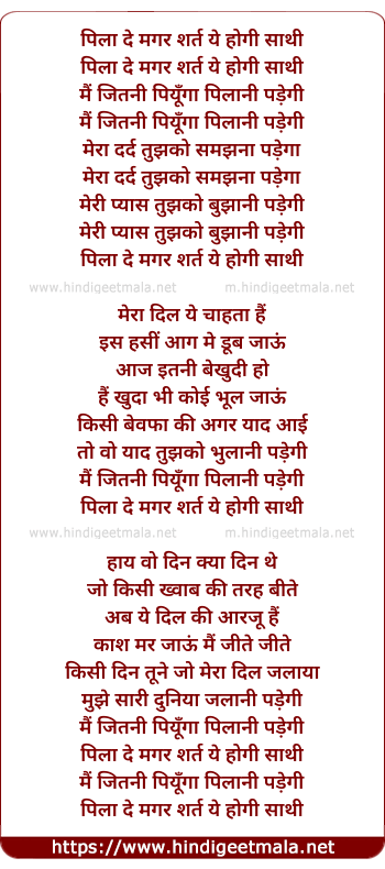 Lyrics of Pila De Magar Shart Ye Hogi Sathi - पिला दे मगर शर्त ये होगी साथी
