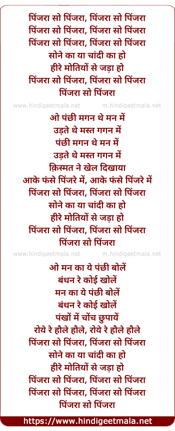Lyrics of Pinjra So Pinjra - पिंजरा सो पिंजरा