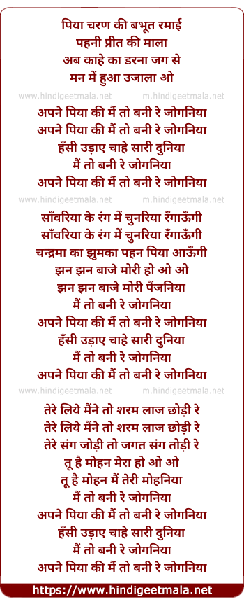 apne piyaa ki mai to bani re jogniya