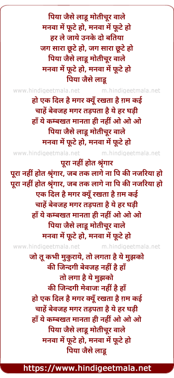 Lyrics of Piya Jaise Laaddoo Motichoorwaale - पिया जैसे लड्डू मोतीचूर वाले