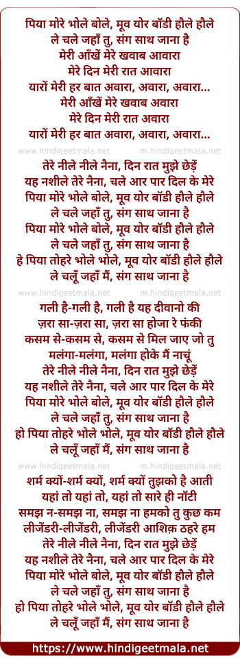 sang saath jaana hai hey.piya tohre bhole bhole