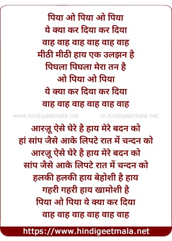 piya o piya ye kya kar diya