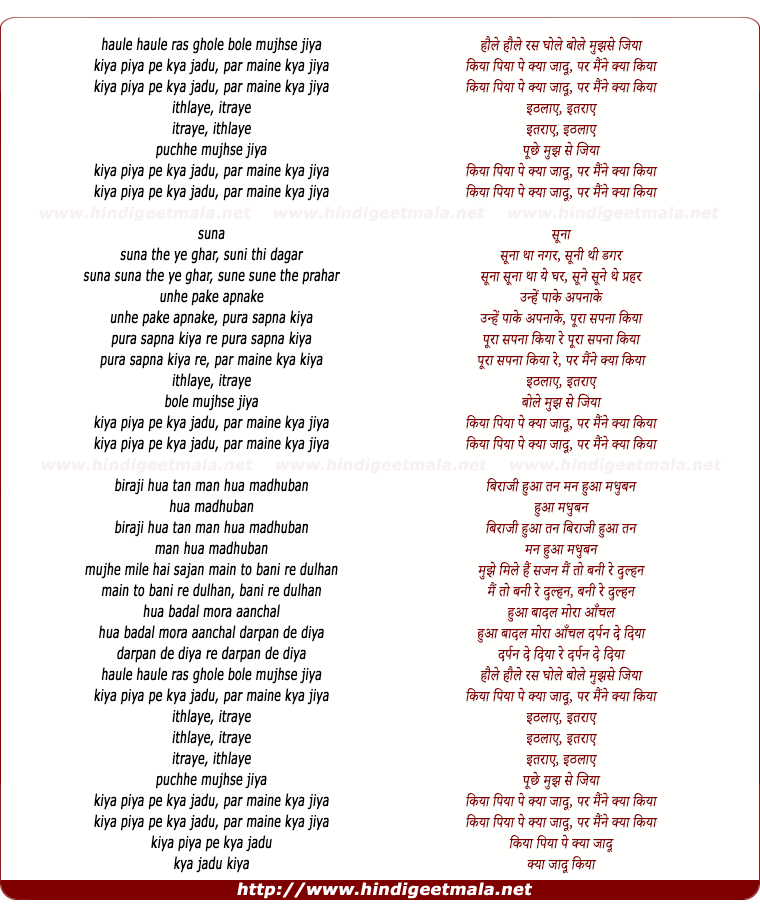 Lyrics of Kiya Piya Pe Kya Jaadu - किया पिया पे क्या जादू