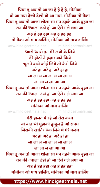 piya tu ab to aaja he he he he, monica