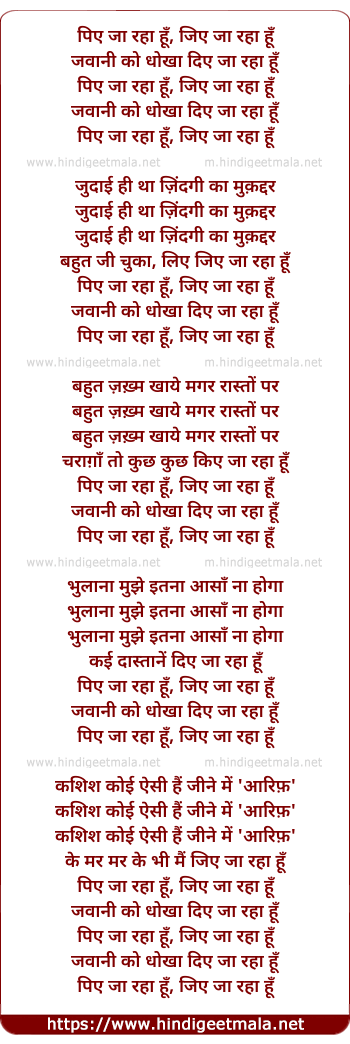 Lyrics of Piye Jaa Rahaa Hun Jiye Jaa Rahaa Hun - पिए जा रहा हूँ, जिए जा रहा हूँ