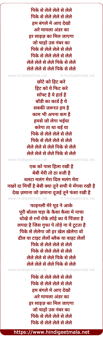 Lyrics of Pk Se Lele - पिके से लेले