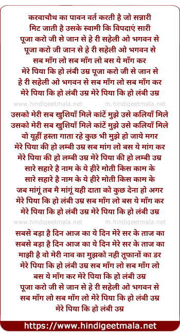 mere piya ki ho lambi umar pooja karo ji se jan se