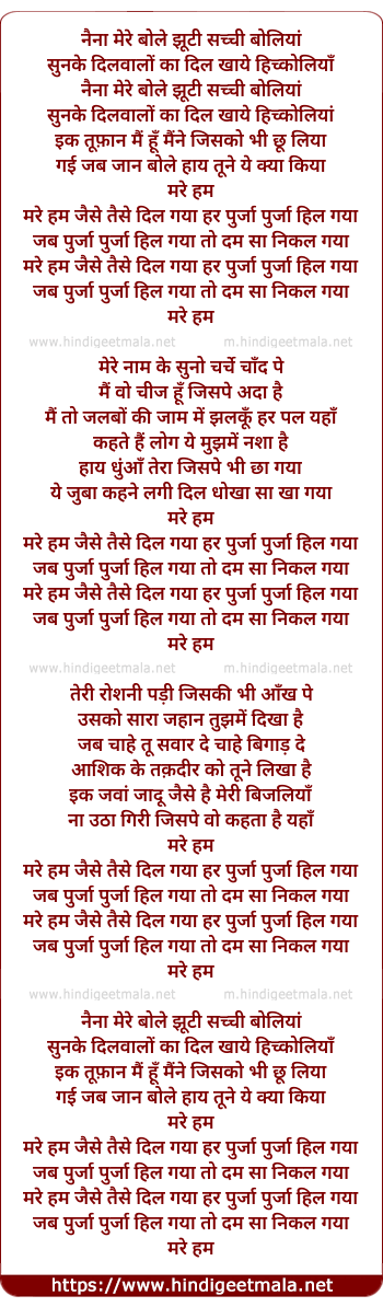 Lyrics of Poorza Poorza Khil Gaya - पुर्जा पुर्जा खिल गया