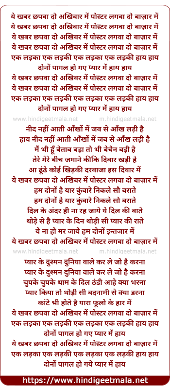 Lyrics of Poster Lagwa Do Bazar Mein - II - पोस्टर लगवा दो बाज़ार में