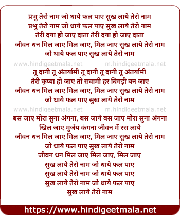 Lyrics of Prabho Tero Naam - प्रभु तेरो नाम