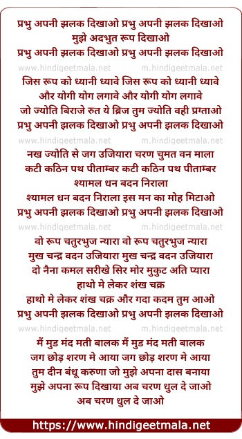 Lyrics of Prabhu Apni Jhalak Dikhao Mohe Adbhut Roop Dikhao - प्रभु अपनी झलक दिखाओ प्रभु अपनी झलक दिखाओ
