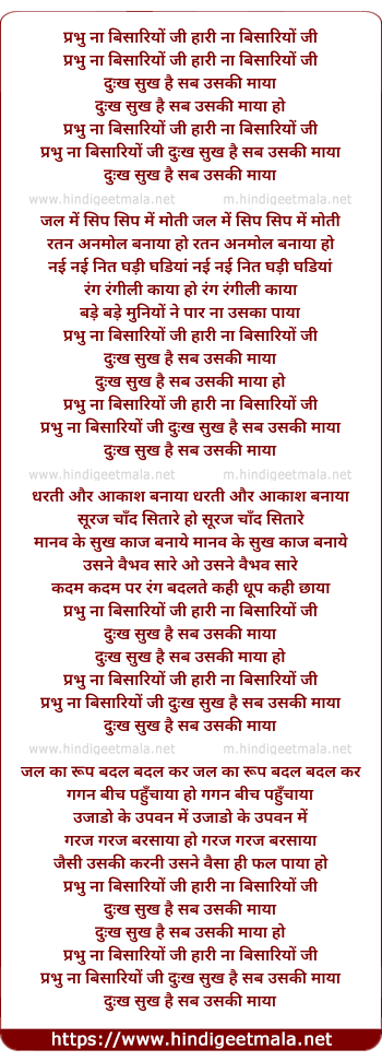 Lyrics of Prabhu Na Bisariye Jee Hari Na Basariyo Jee - प्रभु ना बिसारियों जी हारी ना बिसारियों जी