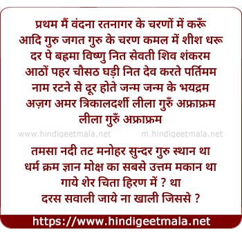 Lyrics of Pratham Main Vandanaa - प्रथम मैं वंदना रतनागर के चरणों में करूँ