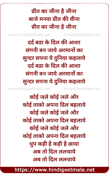 Poetic Translation - Lyrics of Preet Kaa Jeena Hee Jeena - प्रीत का जीना है जीना