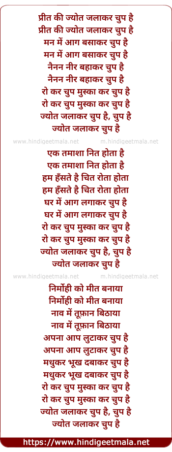 Lyrics of Preet Ki Jyot Jalakar Chup Hai - प्रीत की ज्योत जलाकर चुप है