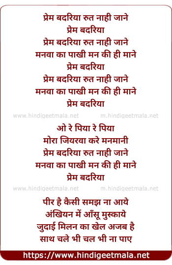 Lyrics of Prem Badariya - प्रेम बदरिया