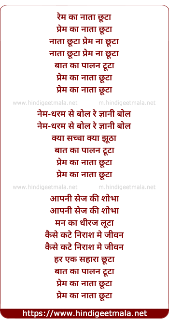 Lyrics of Prem Ka Nata Chhuta - प्रेम का नाता छूटा