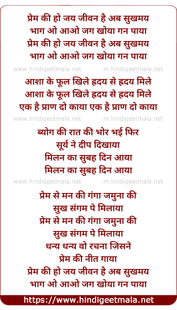 Lyrics of Prem Ki Ho Jai Jai - प्रेम की हो जय जीवन है अब सुखमय