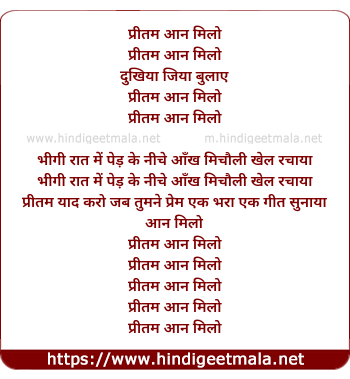 Lyrics of Pritam Aan Milo - प्रीतम आन मिलो