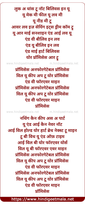 Poetic Translation - Lyrics of Promises - प्रोमिसेस