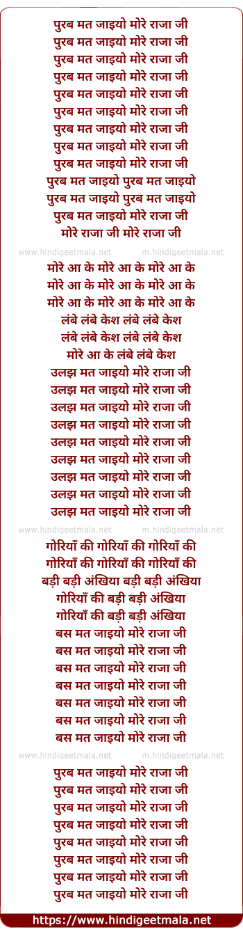 Lyrics of Purab Mat Jaana More Raja Ji - पुरब मत जाइयो मोरे राजा जी