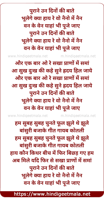 Lyrics of Purane Un Dino Ki Baatein - पुराने उन दिनों की बातें