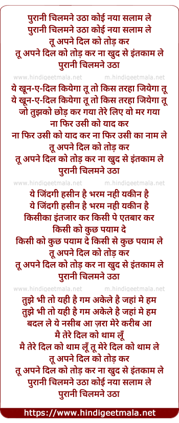 Lyrics of Purani Chilmane Utha Koi Naya Salam Le - पुरानी चिलमने उठा कोई नया सलाम ले