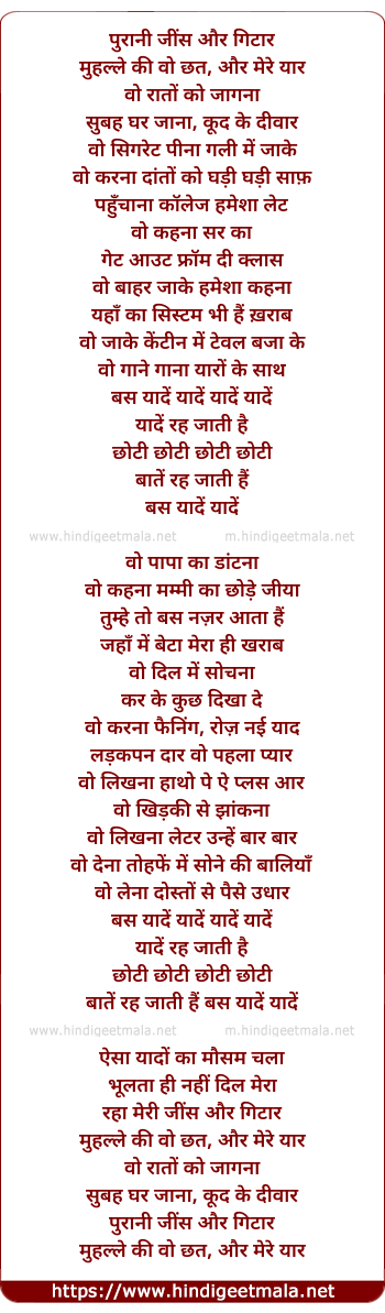 Lyrics of Purani Jeans (Rock) - पुरानी जींस और गिटार