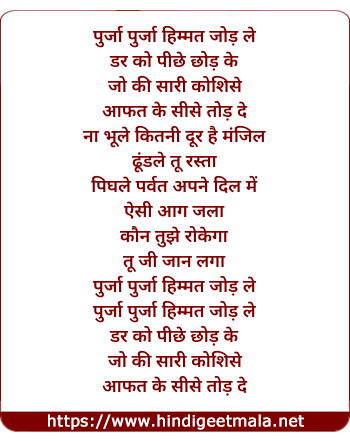Lyrics of Purza Purza Himmat Jod Le - पुर्जा पुर्जा हिम्मत जोड़ ले