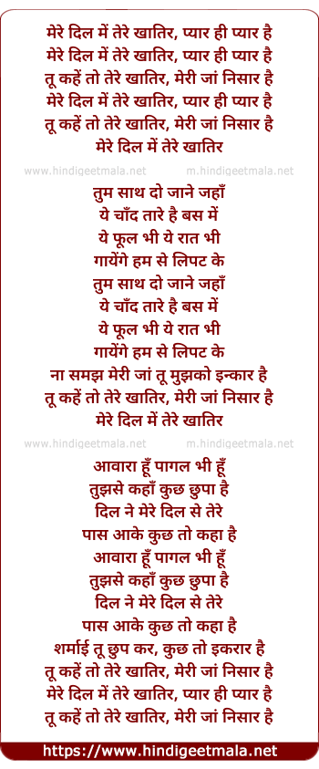 Lyrics of Pyaar Hi Pyaar - मेरे दिल में तेरे खातिर, प्यार ही प्यार है