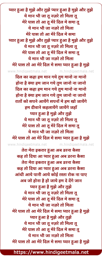 Lyrics of Pyaar Hua Hai Mujhe Aur Tujhe - प्यार हुआ है मुझे और तुझे