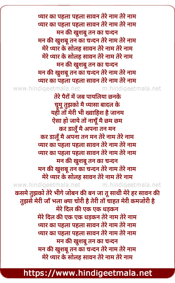 Lyrics of Pyaar Ka Pehla Saawan Tere Naam - प्यार का पहला पहला सावन तेरे नाम तेरे नाम