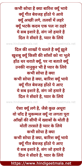 Lyrics of Pyaar Ke Liye - प्यार के लिये