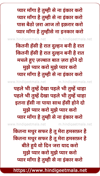 Lyrics of Pyaar Maangaa Hai Tumhin Se Na Inakaar Karo - प्यार माँगा है तुम्ही से इंकार करो