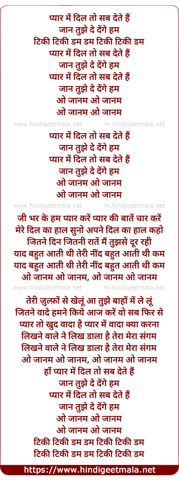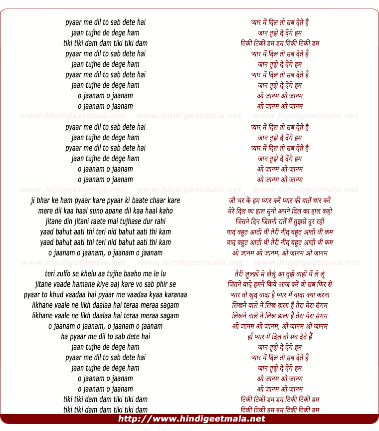 Lyrics of Pyaar Men Dil To Sab Dete Hain, O Jaanam - प्यार में दिल तो सब देते हैं जान तुझे दे देंगे हम