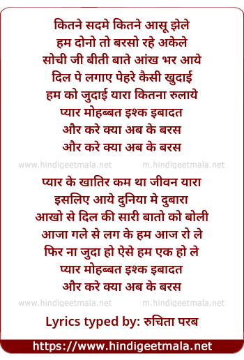Poetic Translation - Lyrics of Pyaar Mohabbat-Sad - कितने सदमे कितने आसू झेले