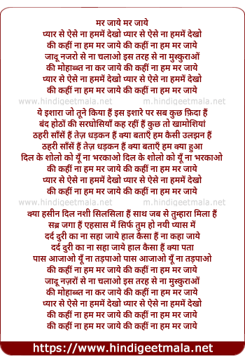 Lyrics of Pyaar Se Aise Na Humme Dekho - प्यार से ऐसे ना हममें देखो