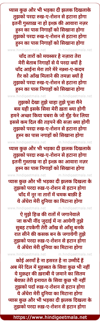 Lyrics of Pyaas Kuchh Aur Bhi Bhadka Di Jhalak Dikhla Ke - प्यास कुछ और भी भड़का दी झलक दिखला के