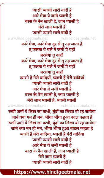pyaasi hai meri vaadiya, pyaasi hai meri vaadiya