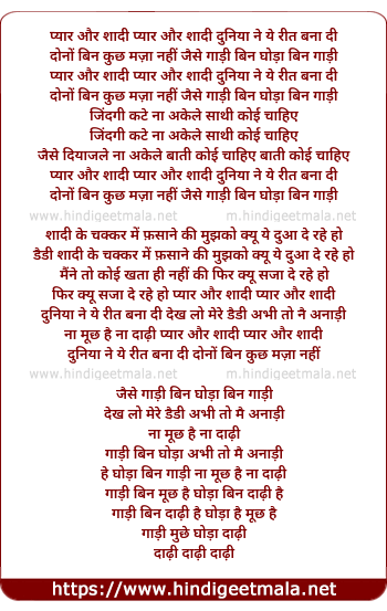 Lyrics of Pyar Aur Shaadi - प्यार और शादी
