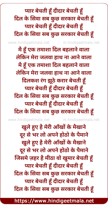 Lyrics of Pyaar Bechti Hu Didar Bechti Hu - प्यार बेचती हूँ दीदार बेचती हूँ