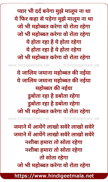 Lyrics of Pyar Bhi Dard Banega - प्यार भी दर्द बनेगा