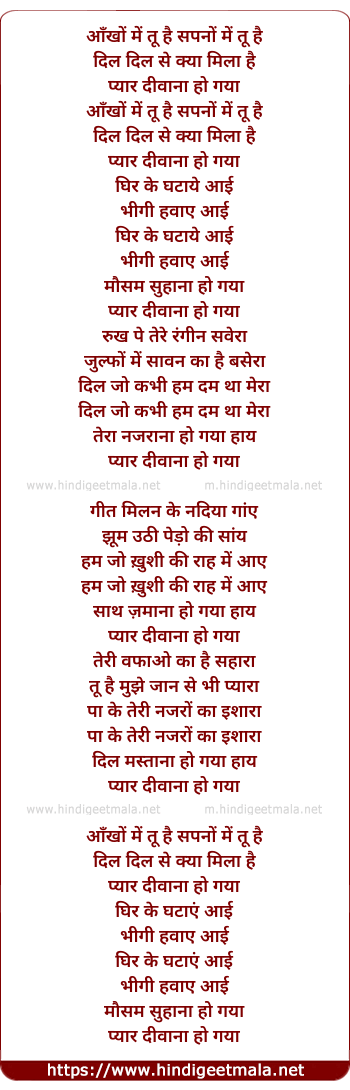 Lyrics of Pyar Diwaana Ho Gaya - प्यार दीवाना हो गया