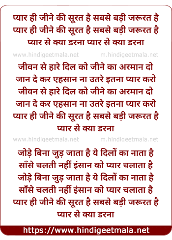 Lyrics of Pyar Hi Jine Ki Surat Hai - प्यार ही जीने की सूरत है