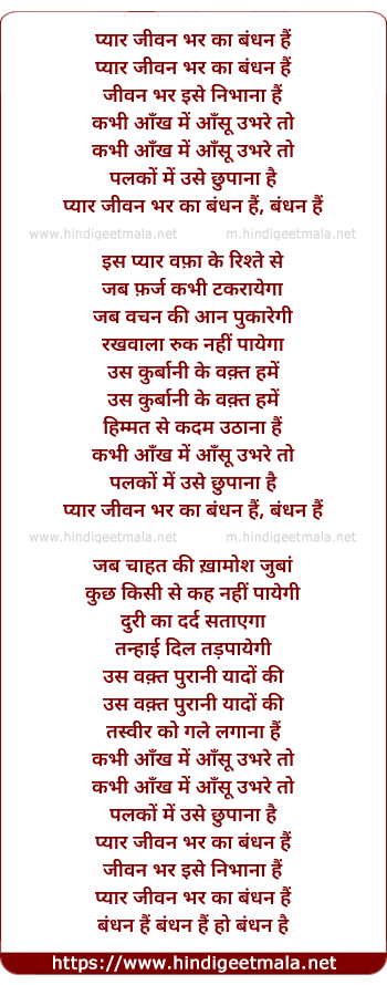 Lyrics of Pyar Jeevan Bhar Kaa (2 Part) - प्यार जीवन भर का बंधन हैं