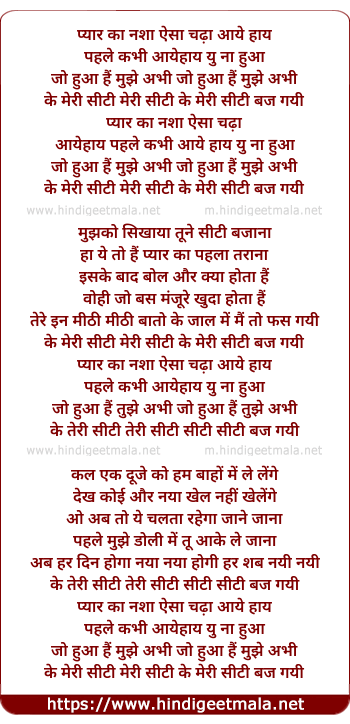 Lyrics of Pyar Ka Nasha Aisa Chadha - प्यार का नशा ऐसा चढ़ा